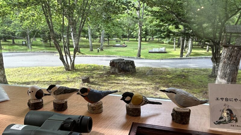 窓際のカウンターには双眼鏡が用意されており、野鳥たちの活動を観察することができます。